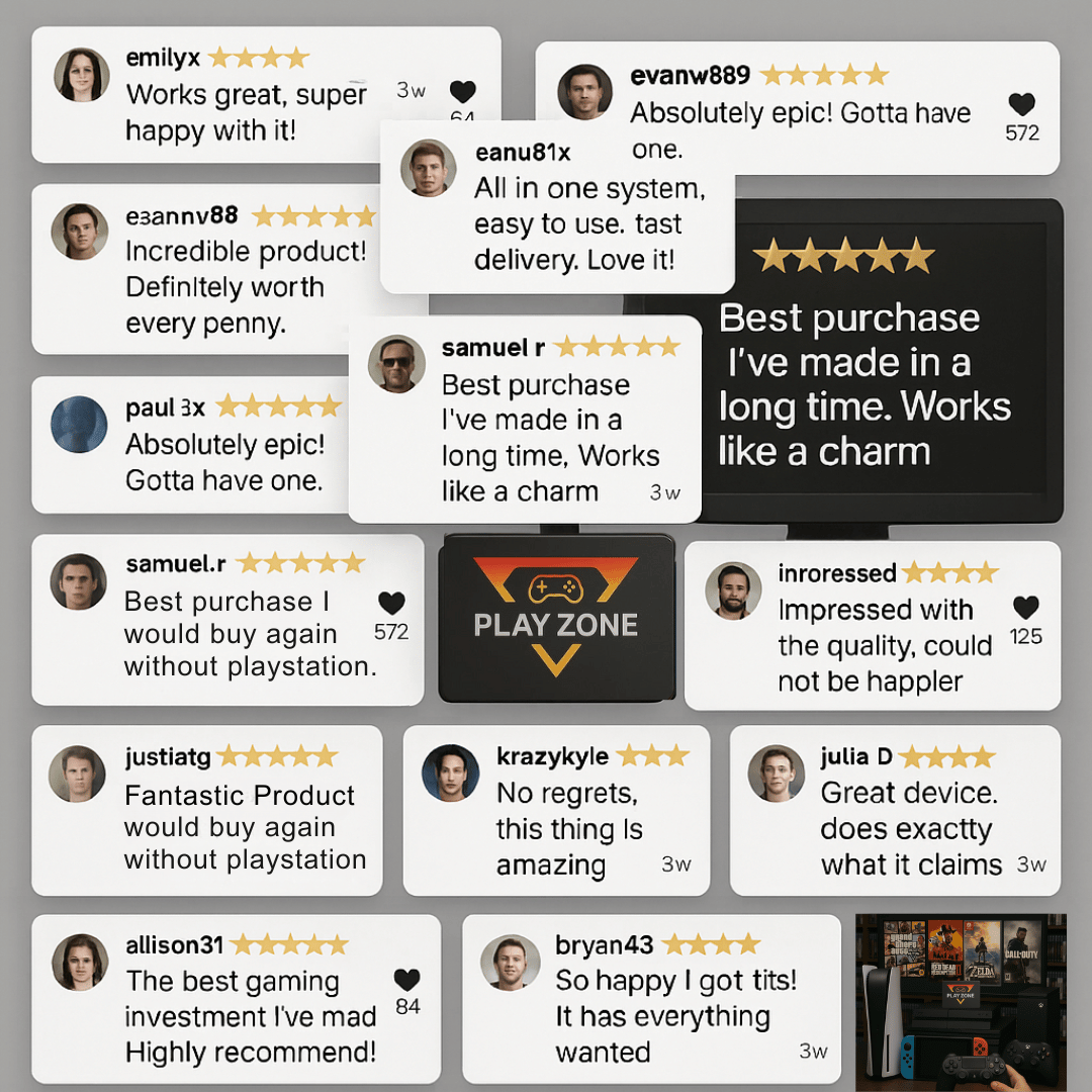 PlayRetro™ comes with everything ready to go — no extras, no setup, no hassle. With built-in storage, wireless controllers, and an easy-to-use interface, everything you need is included for the ultimate plug-and-play experience.